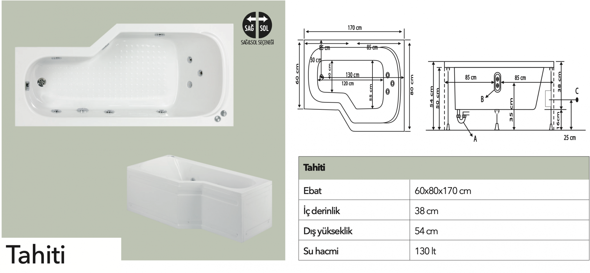 Küvet + Gövde + Panel Takımı ve Kumandalı Sifon Dahildir